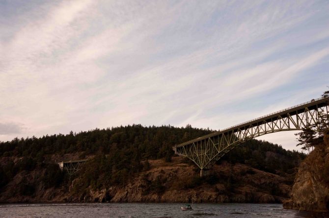 Kind of takes your breath away, doesn’t it? I just stood on the beach for about 30 minutes, watching children play and old men fish. The photograph at the top of this post is also from Deception Pass, snapped as the sun was setting. More than a quarter of a mile long, the bridge is even more thrilling once you are driving over it.