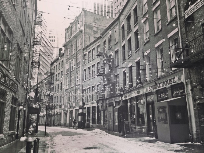 In the middle of the Financial District of New York City, hiding in the shadows of skyscrapers, is Stone Street, a step back in time.